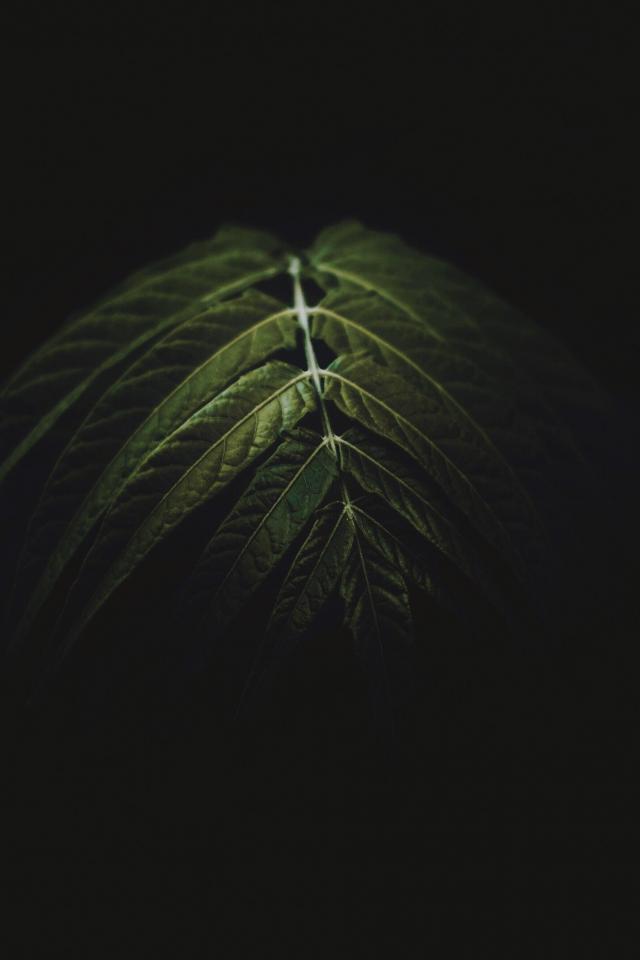 Wallpaper A beautiful black butterfly sits on a green raspberry leaf