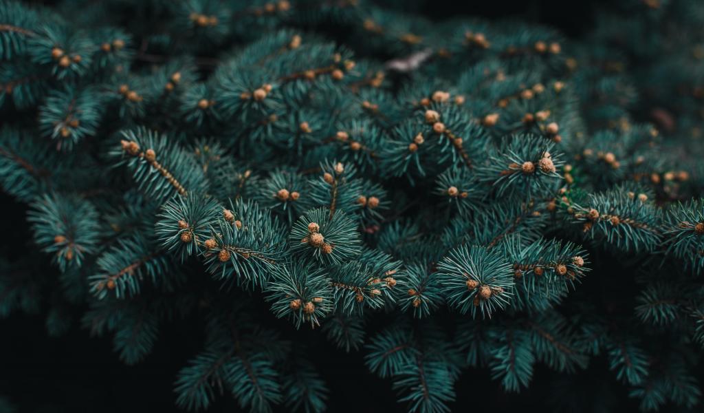 Wallpaper Four big bumps on a green spruce branch