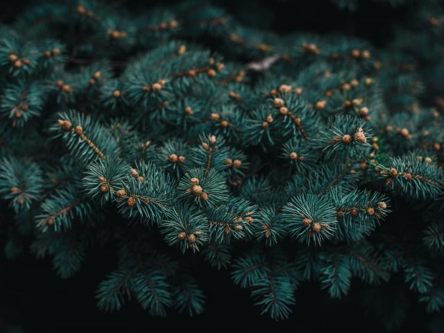 Wallpaper Four big bumps on a green spruce branch