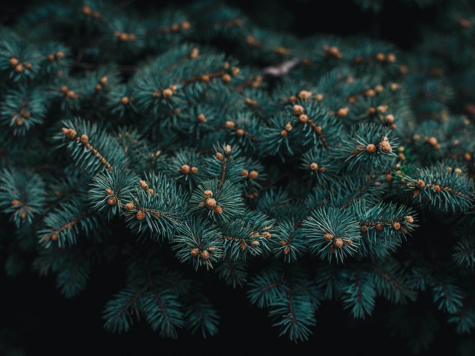 Wallpaper Red spruce toys, cones and green spruce branch for the New Year and Christmas 2019