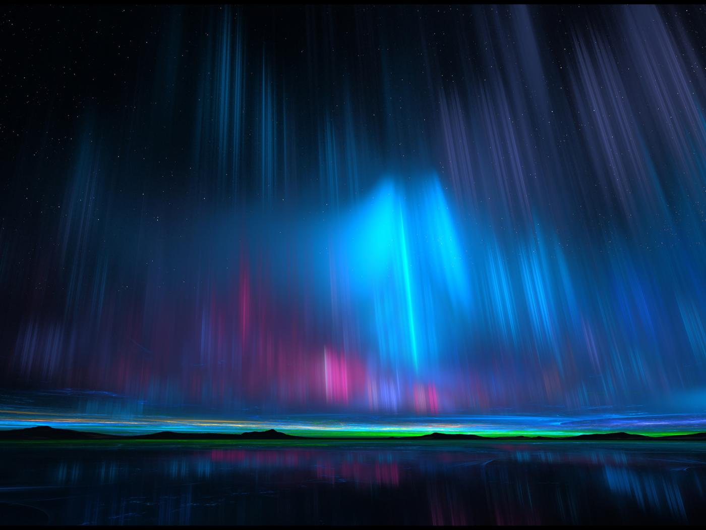 Wallpaper Northern lights over water at night