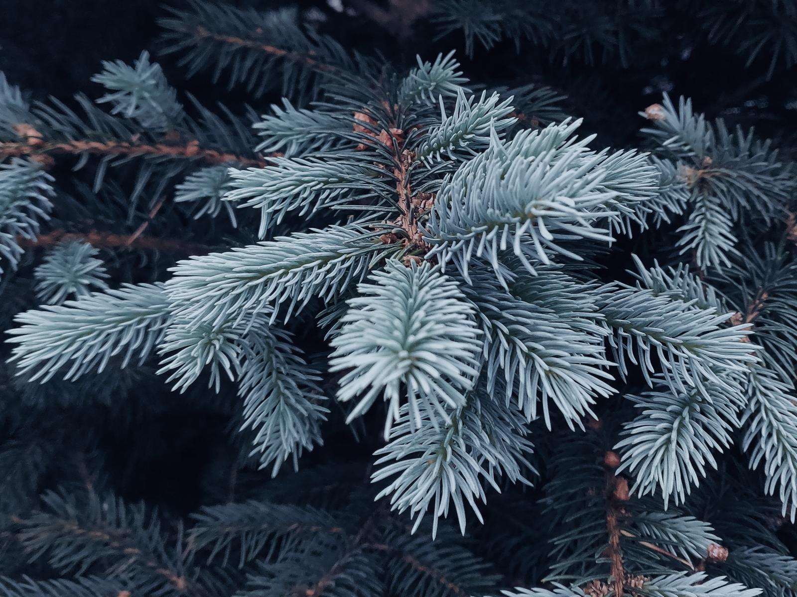Wallpaper Beautiful young blue-eyed girl at a spruce branch in winter