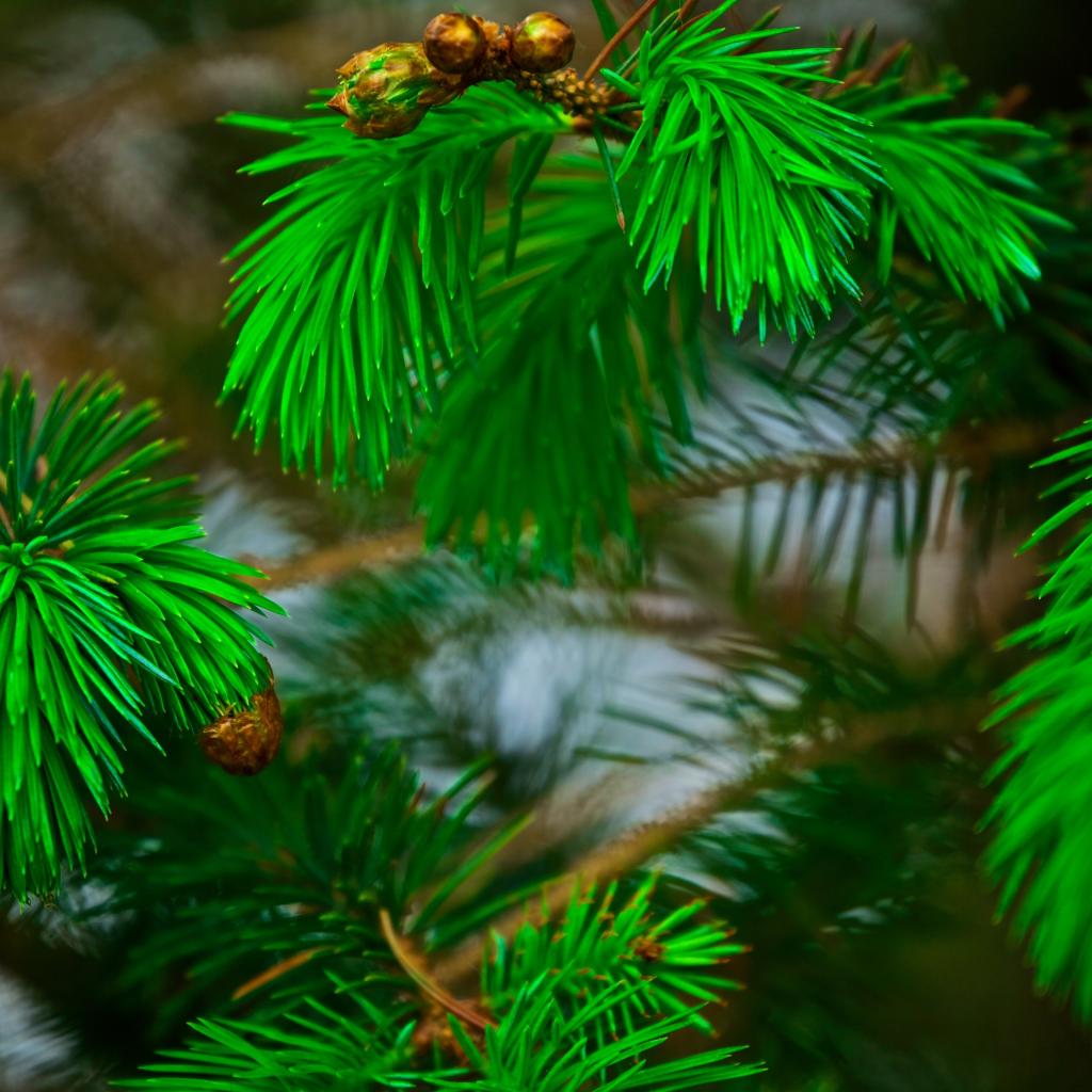 Wallpaper Green pine needles on the branches with cones