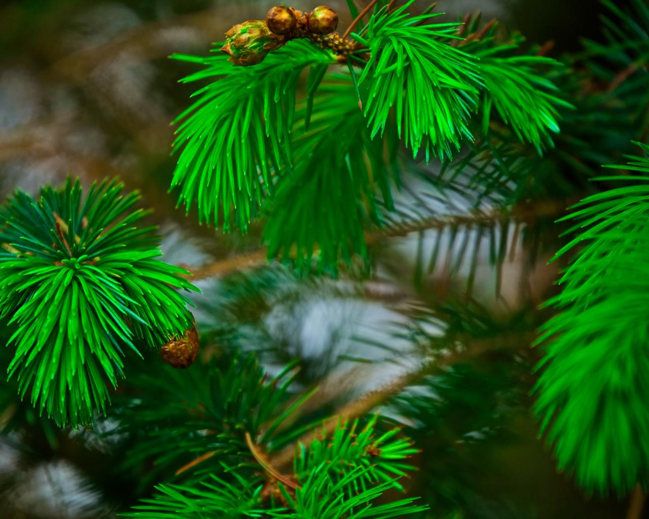 Wallpaper Green pine needles on the branches with cones