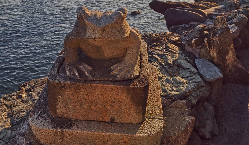 Wallpaper A big toad is sitting on a moss-covered stone.
