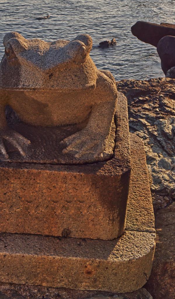 Wallpaper A big toad is sitting on a moss-covered stone.