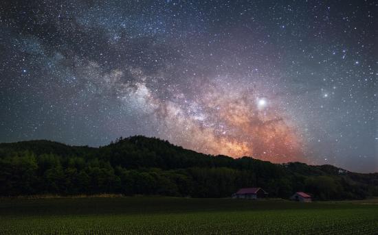 Wallpaper Milky Way in the starry sky above the green forest