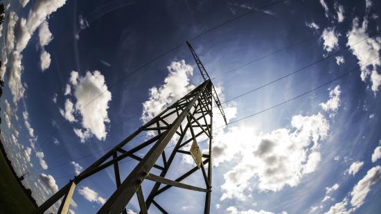Wallpaper Power line pillar on blue sky background with clouds.