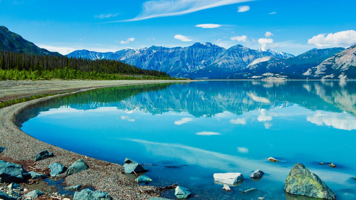 Wallpaper Beautiful blue lake near the snowy mountains