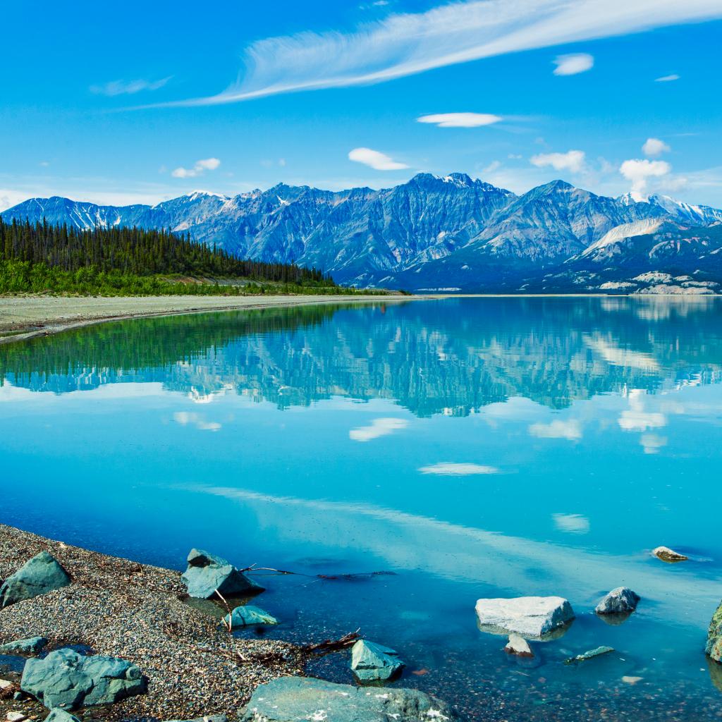 Wallpaper Beautiful blue lake near the snowy mountains