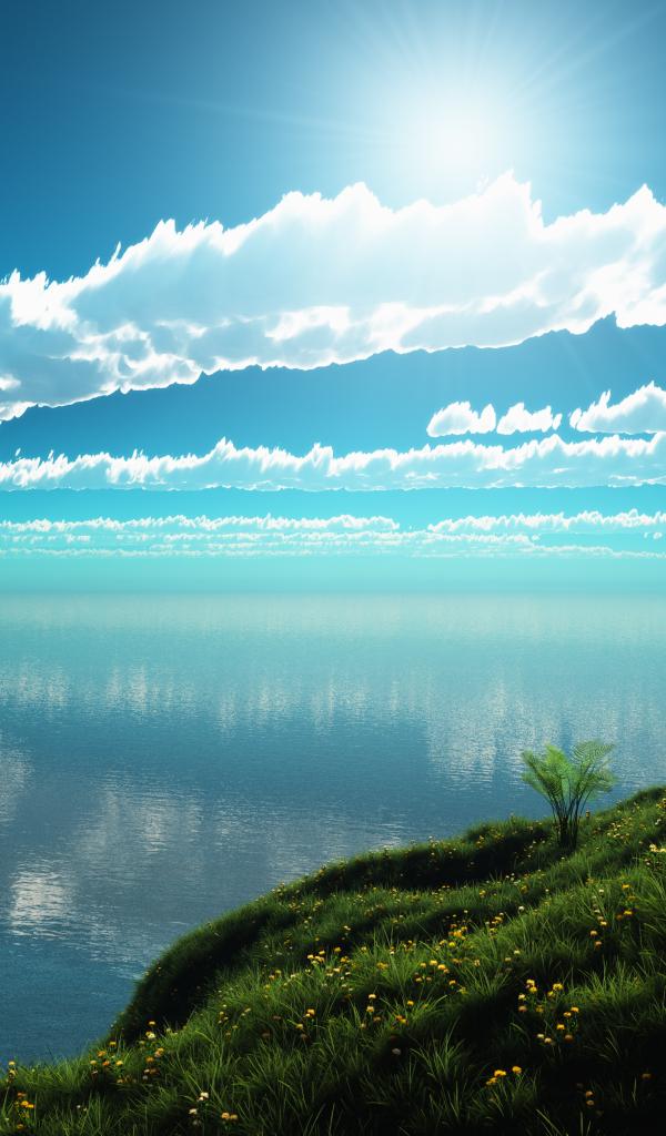 Wallpaper Beautiful white clouds in the sunny sky over the lake