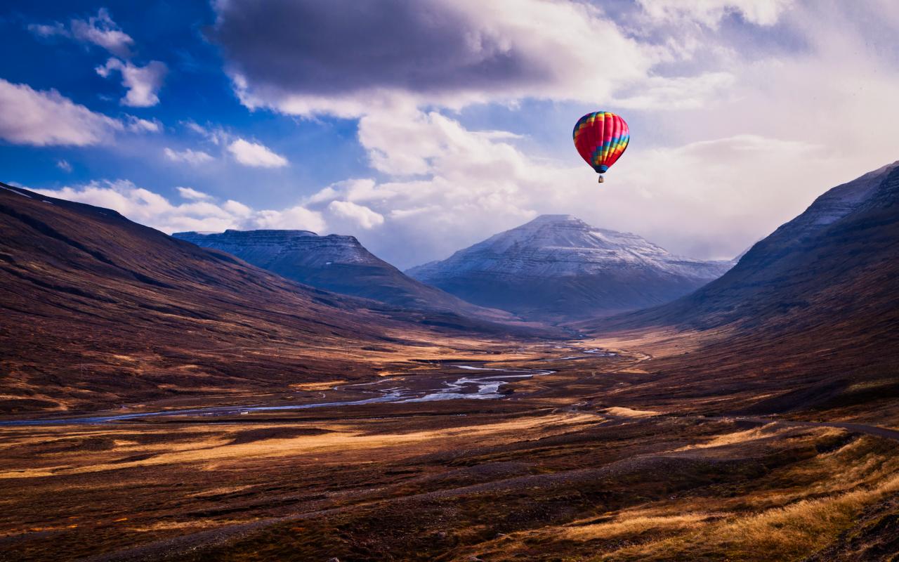 Wallpaper Multi-colored balloon in the sky over the mountains
