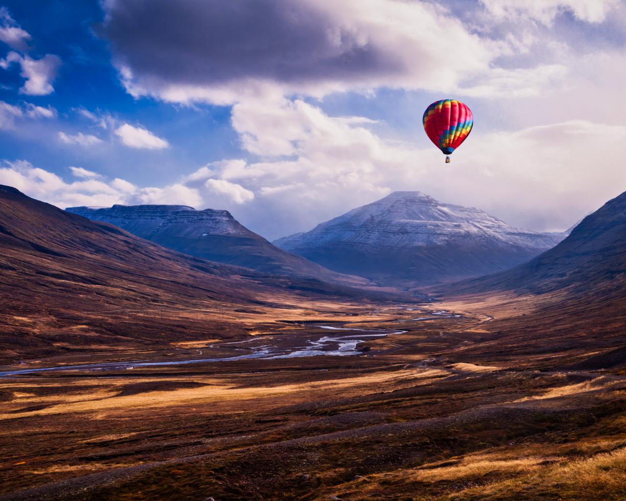 Wallpaper Multi-colored balloon in the sky over the mountains