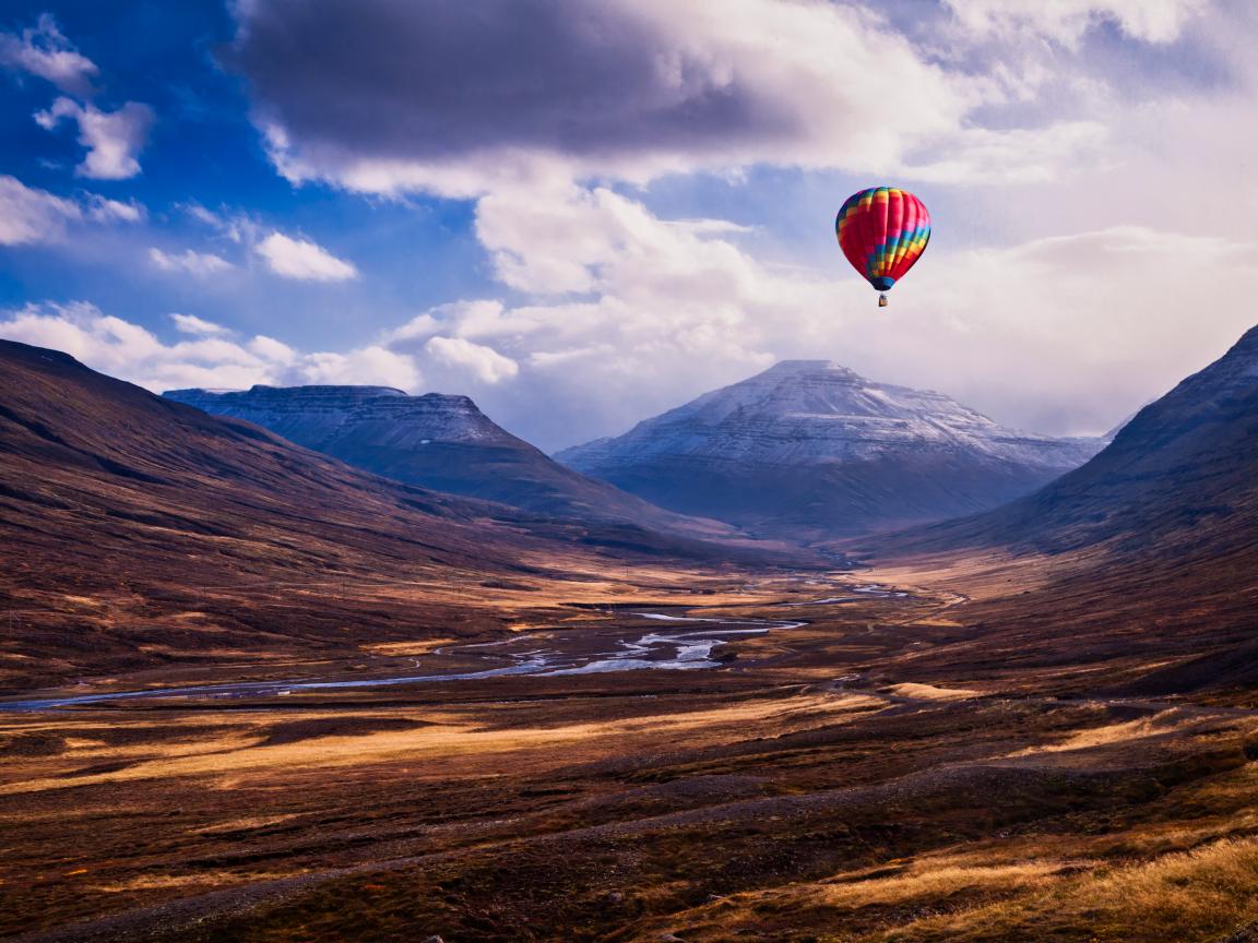 Wallpaper Multi-colored balloon in the sky over the mountains