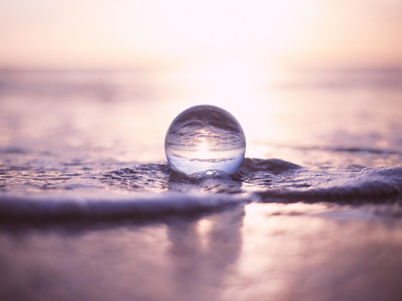 Wallpaper A transparent glass ball lies on the foam in the sea