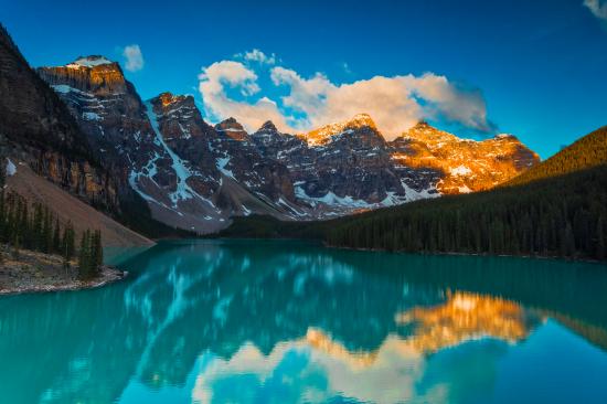 Wallpaper The sun over the high mountains near the blue lake