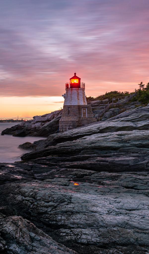 Wallpaper Stone coast in the ocean with a lighthouse