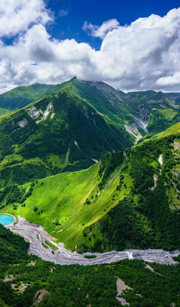 Wallpaper Beautiful scenic green hills under a blue sky with white clouds