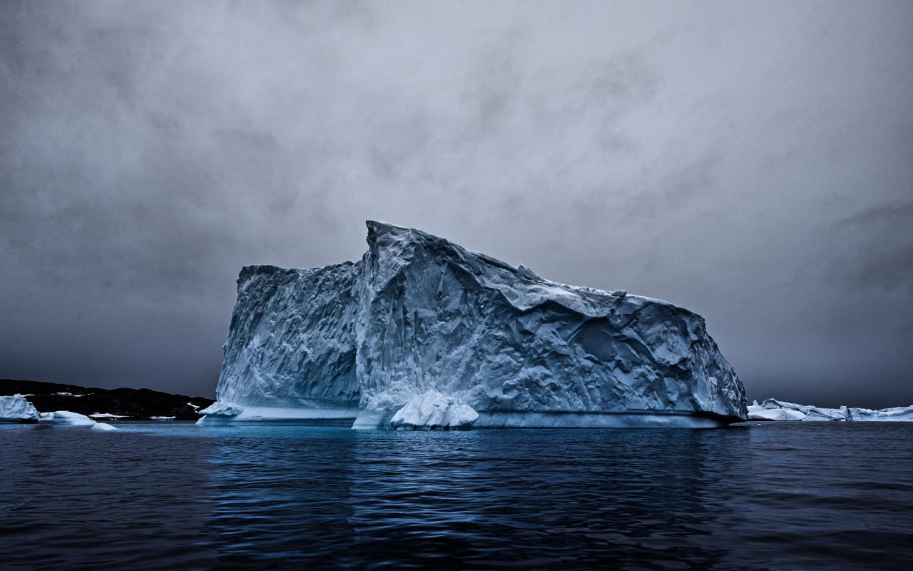 Wallpaper Large iceberg in the ocean under a cloudy sky