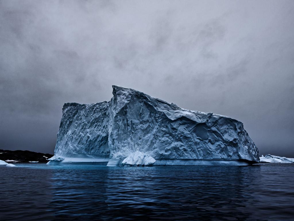 Wallpaper Large iceberg in the ocean under a cloudy sky