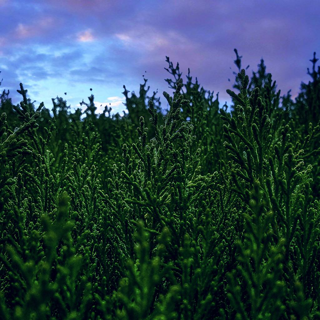 Wallpaper Thuja green under cloudy sky
