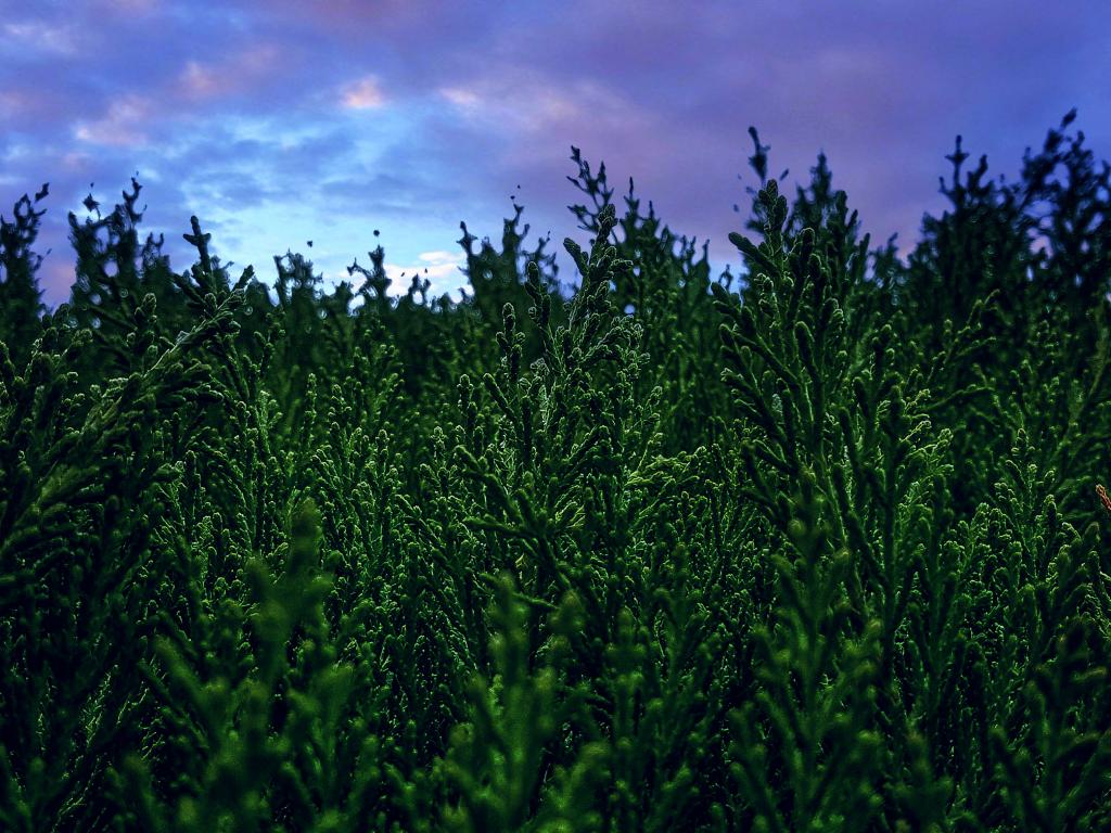 Wallpaper Thuja green under cloudy sky