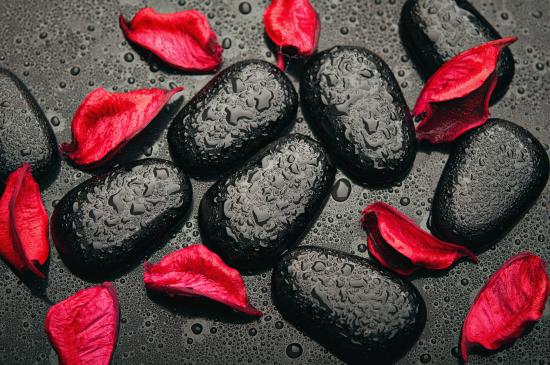 Wallpaper Wet black stones with red rose petals