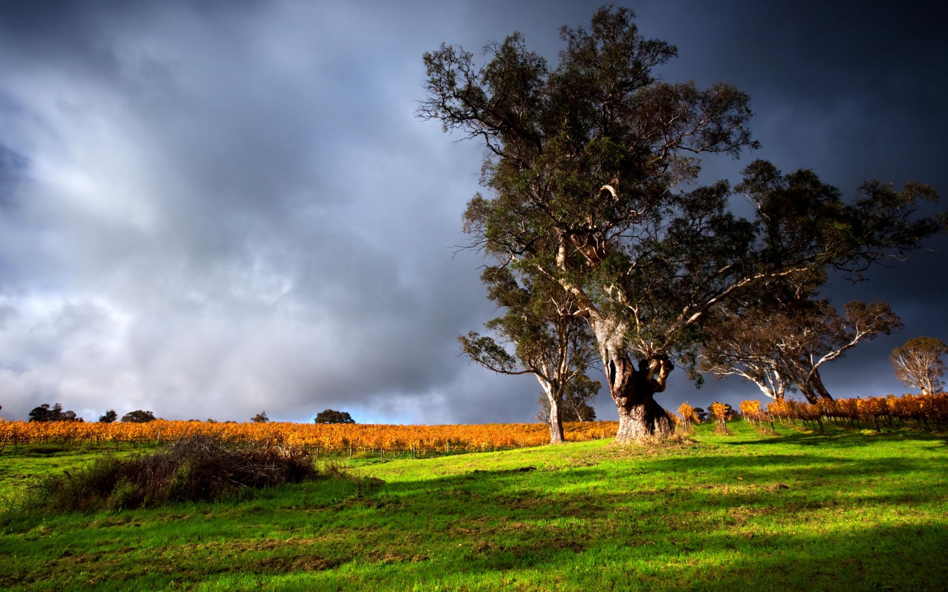 Wallpaper Tall tree under a stormy sky