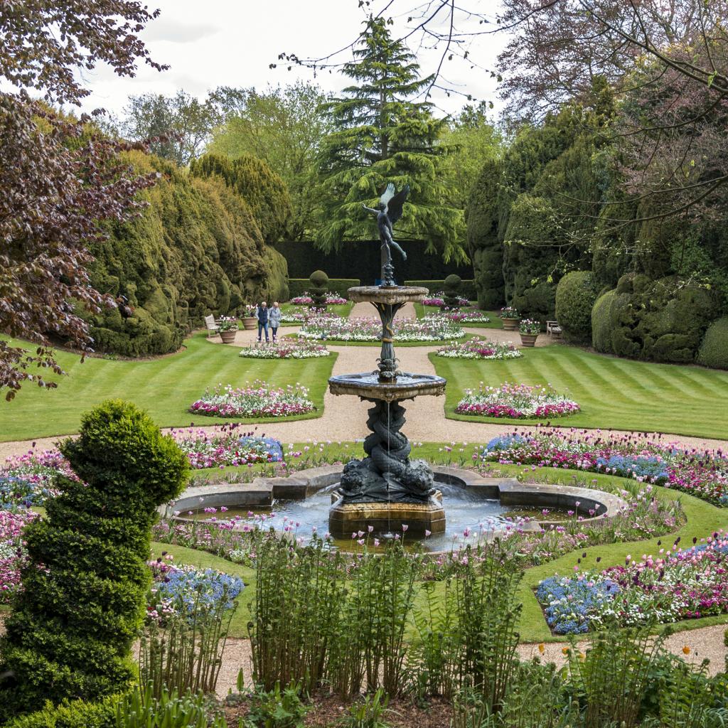 Wallpaper Beautiful fountain in a picturesque park with green trees
