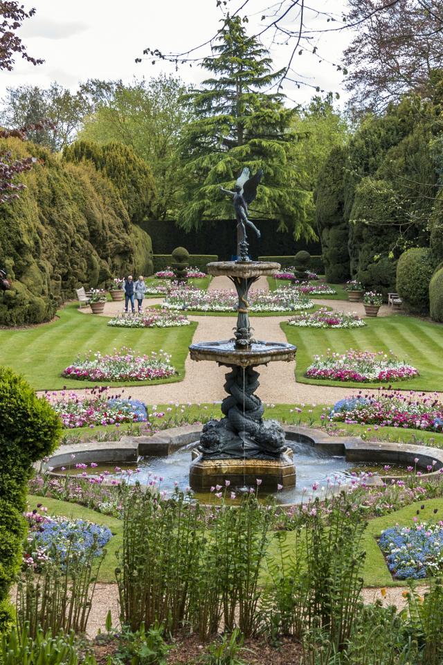 Wallpaper Beautiful fountain in a picturesque park with green trees