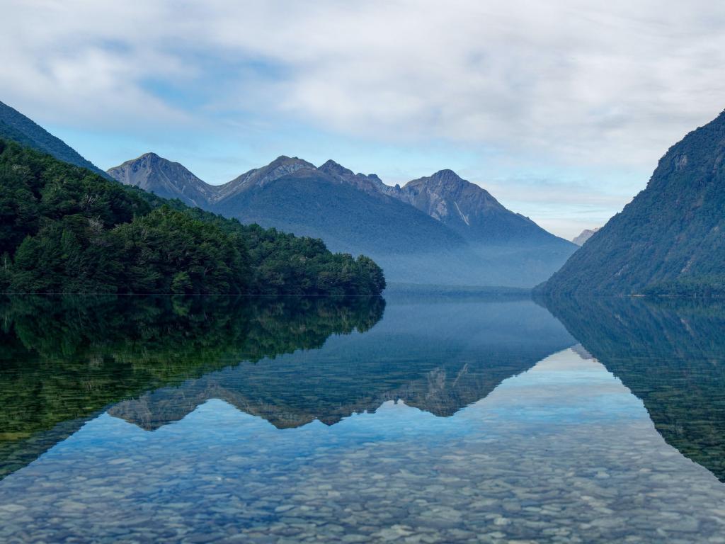 Wallpaper Clear water in a mountain lake at sunrise