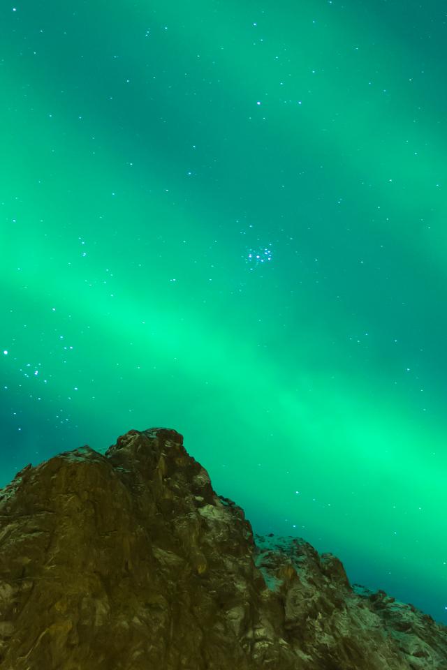 Wallpaper Green aurora borealis over a cliff in the sky