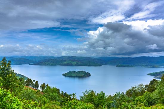 Wallpaper Beautiful view from high onto the bay under thunderclouds