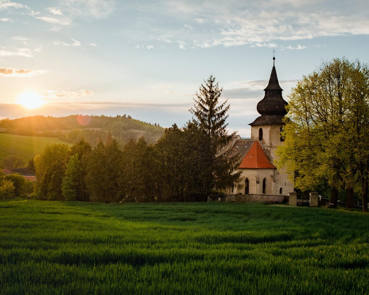 Wallpaper Old church in the park on a clear sunny day in summer