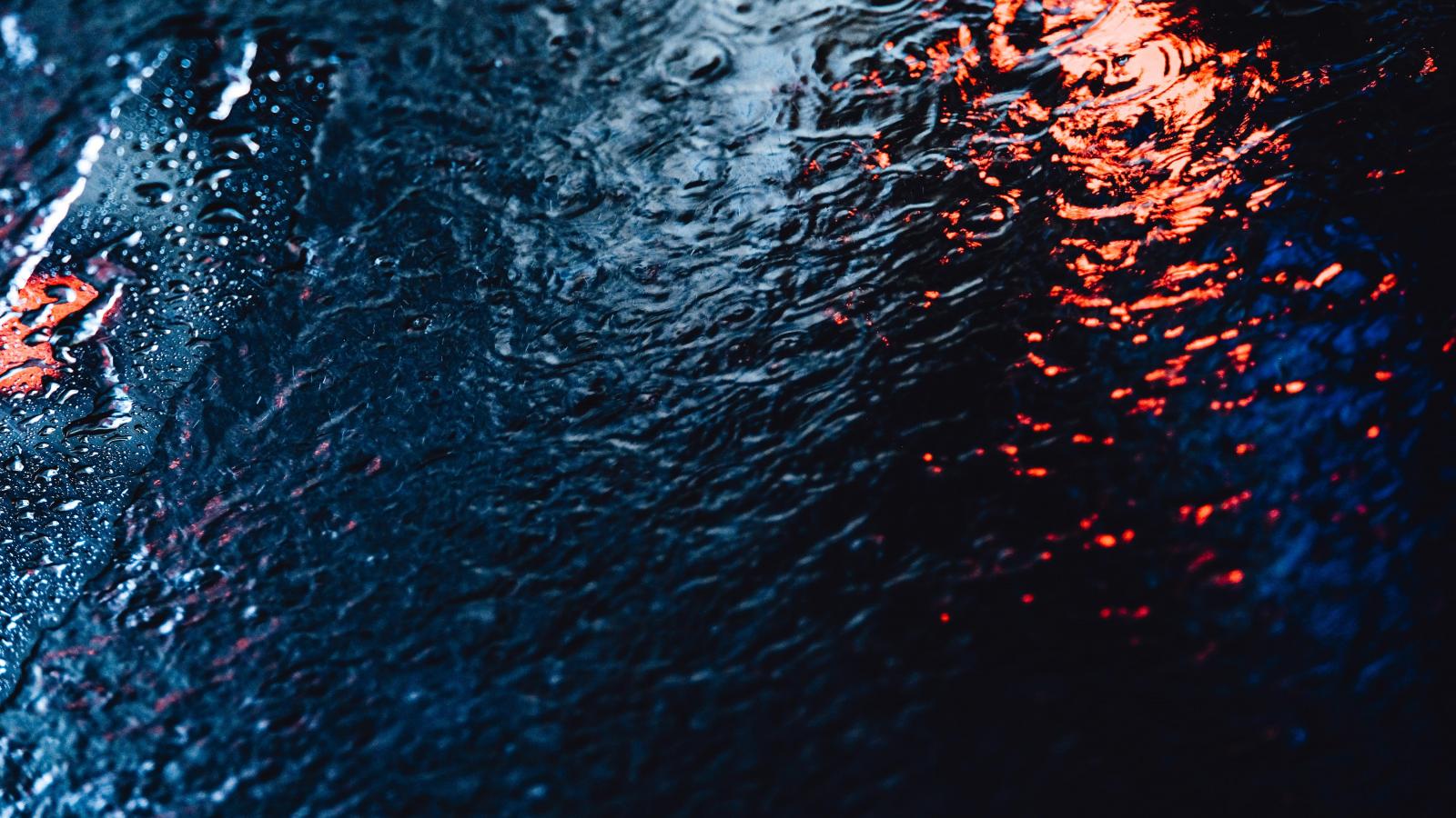 Wallpaper Rain water on the asphalt, black background
