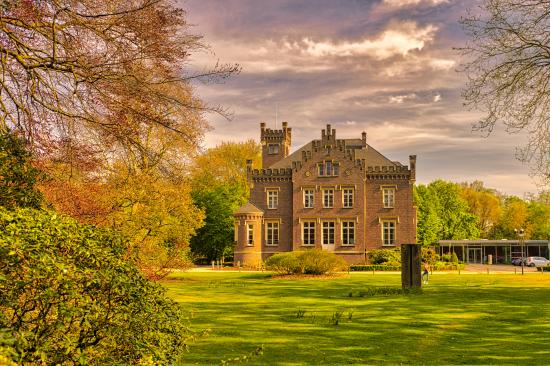 Wallpaper Large three-story house in a green park