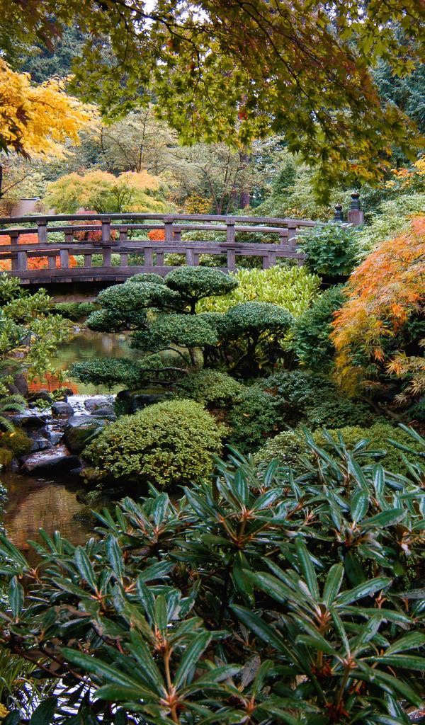 Wallpaper Bridge over a small river in an overgrown park