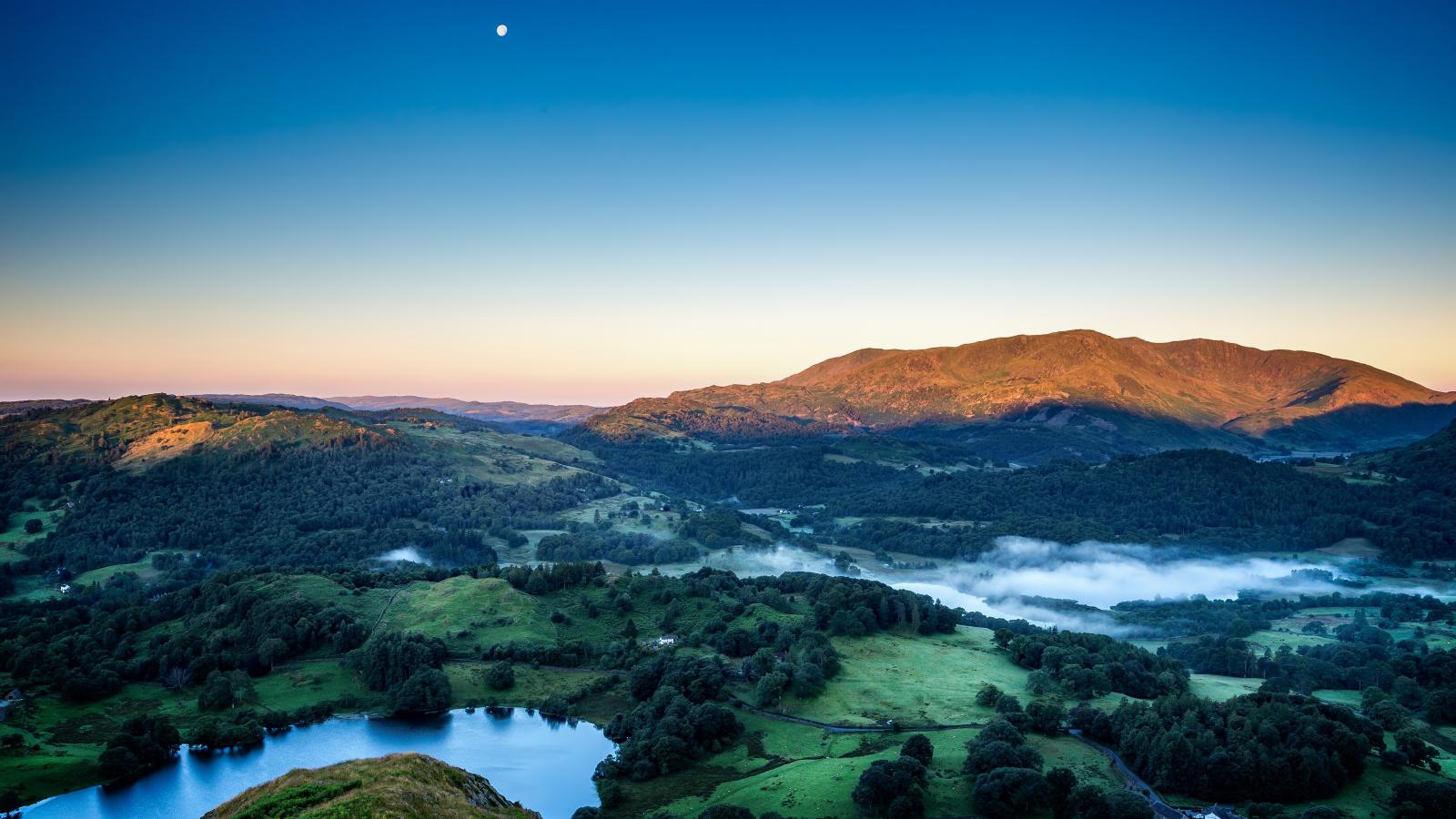 Wallpaper Fog over mountain nature at sunrise