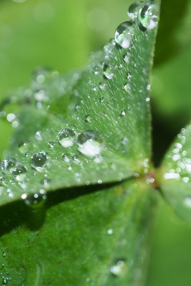 Wallpaper Green clover leaf with dew drops
