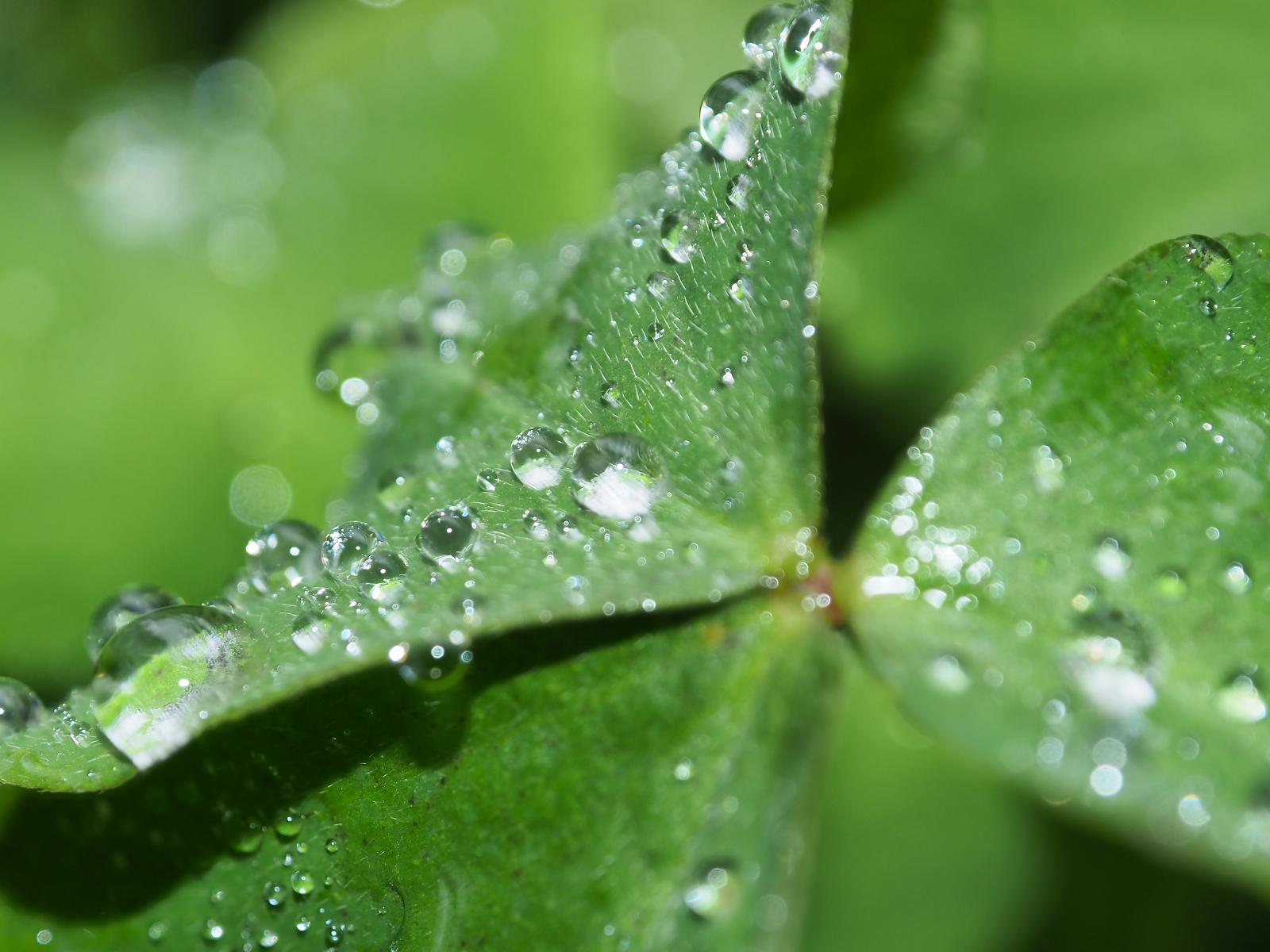Wallpaper Green clover leaf with dew drops