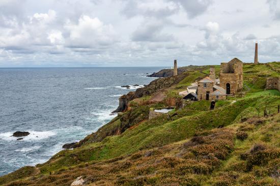Wallpaper Ocean washed by a green cliff under a cloudy sky