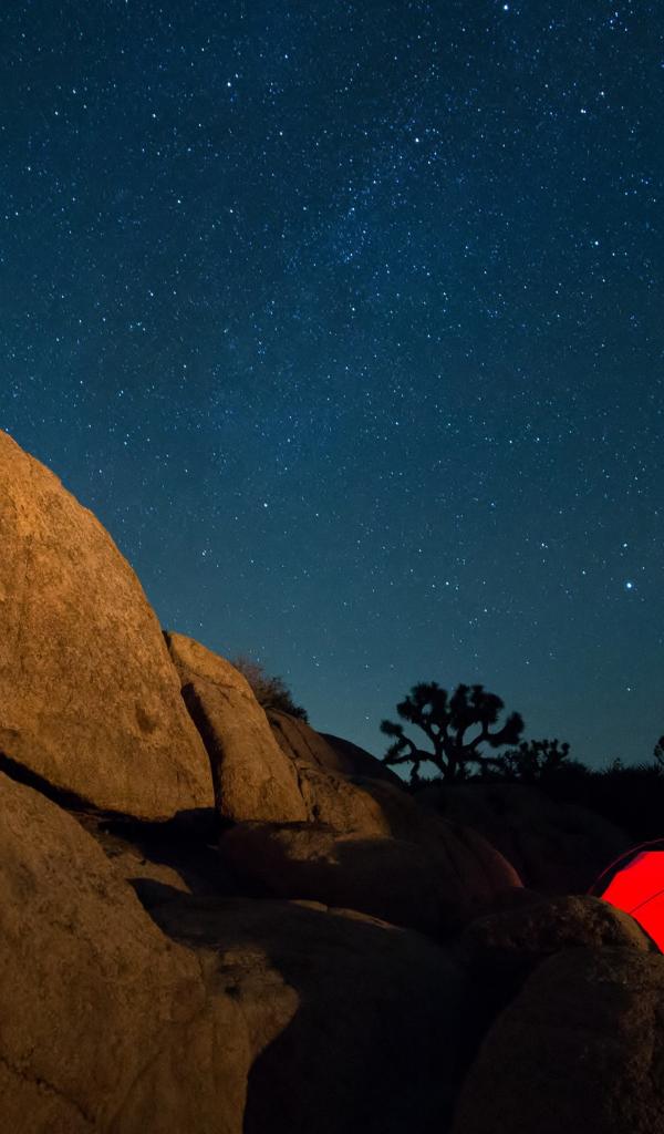 Wallpaper Tent in the mountains under the starry sky