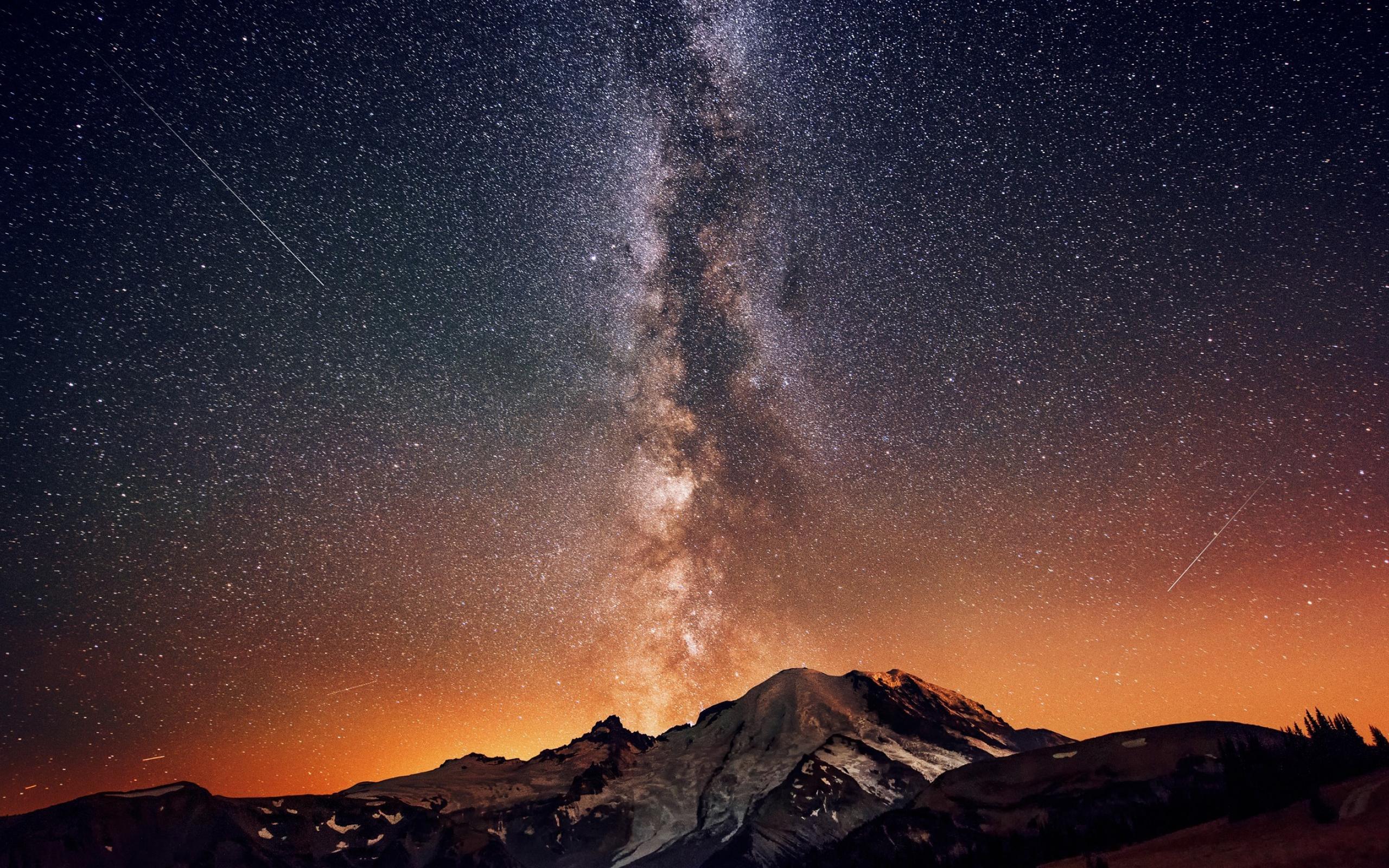 Wallpaper The milky way in the starry sky over the mountain