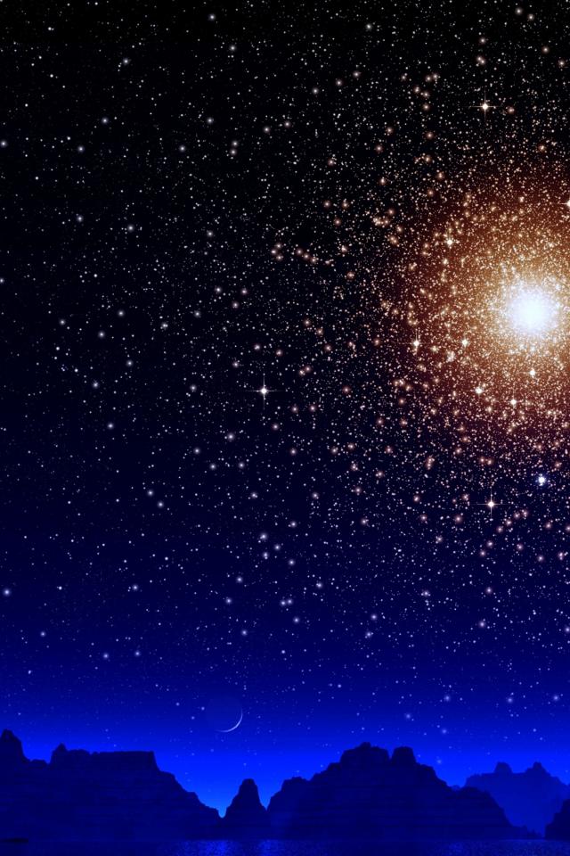 Wallpaper A bright star in the sky with a planet over the mountains