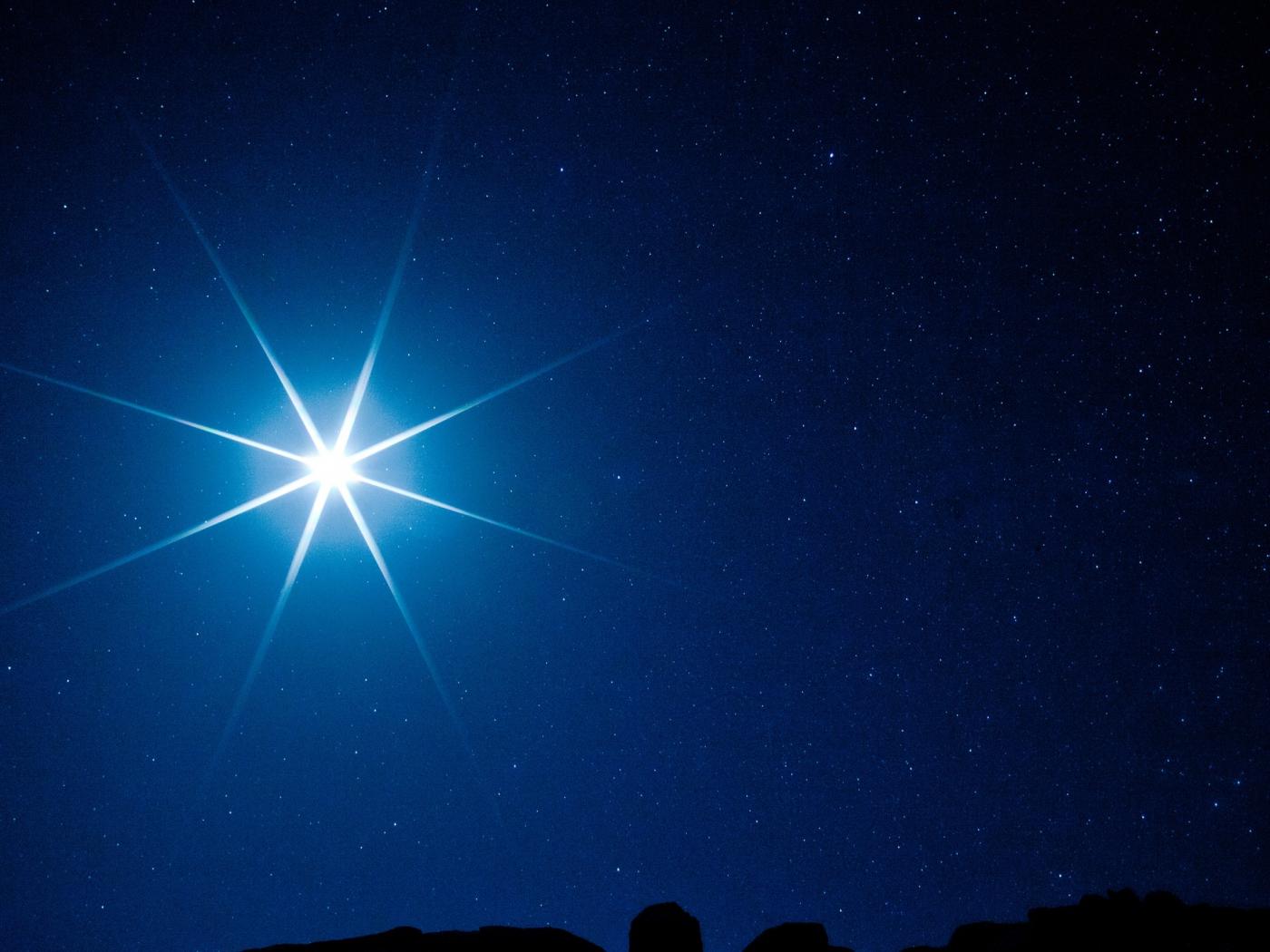 Wallpaper Bright white star in the dark night sky