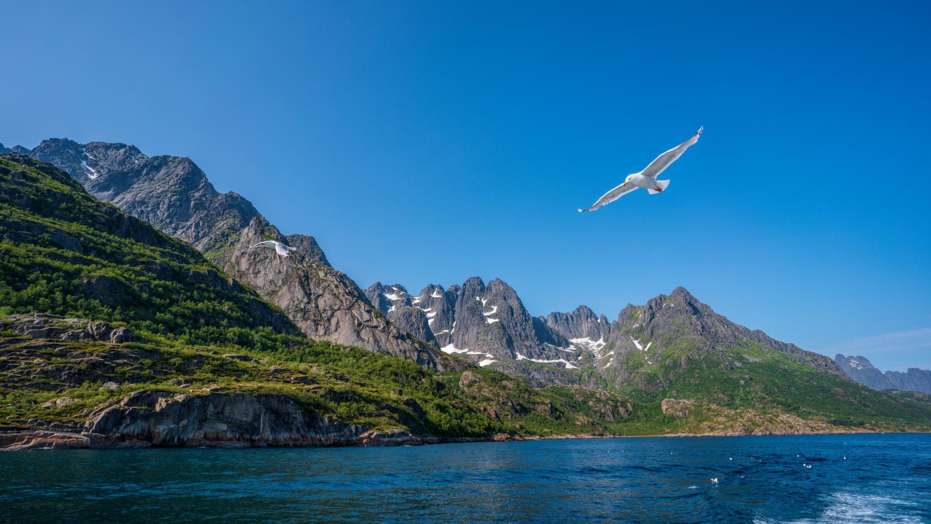 Wallpaper Picturesque Lofoten Islands under the blue sky