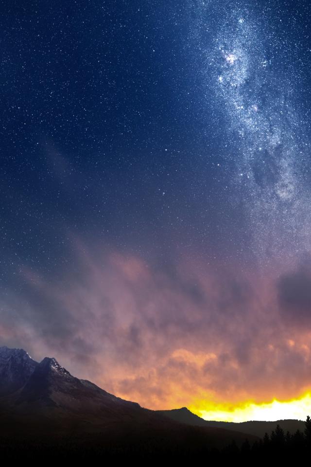 Wallpaper Sunset behind the mountains in the night sky at dusk