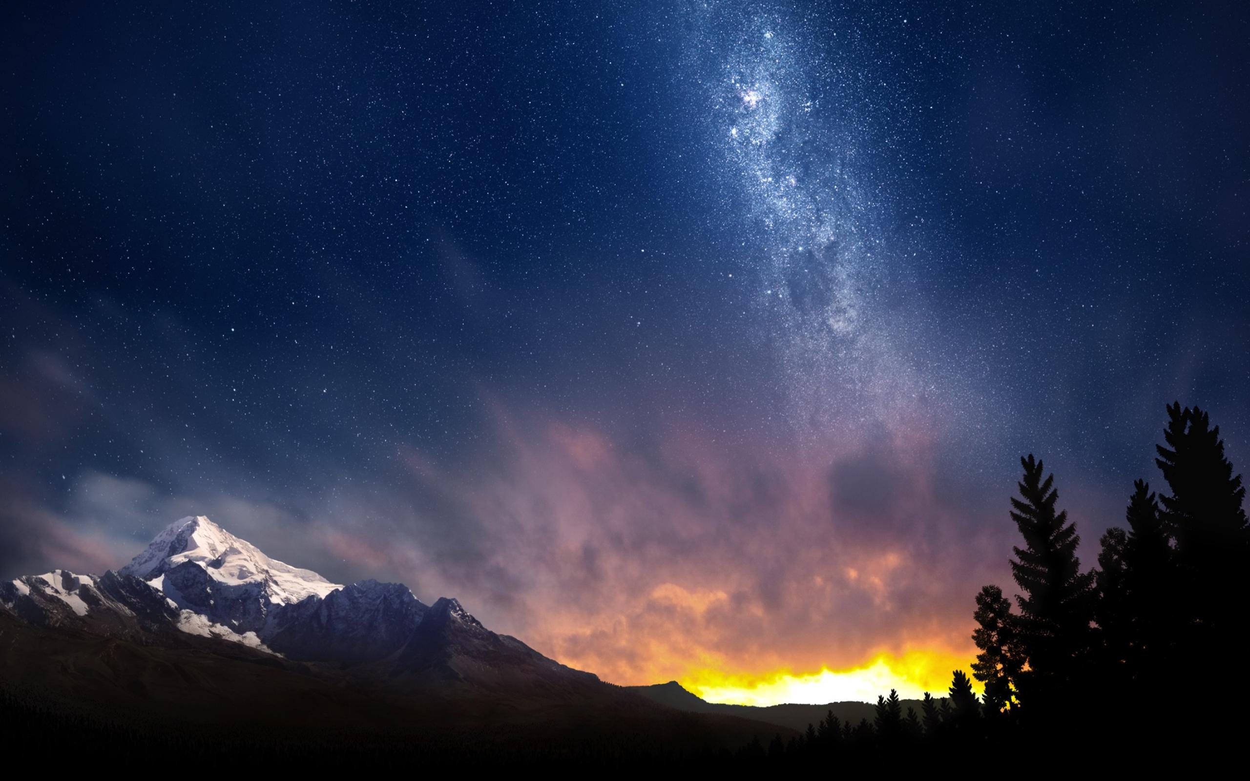 Wallpaper Sunset behind the mountains in the night sky at dusk