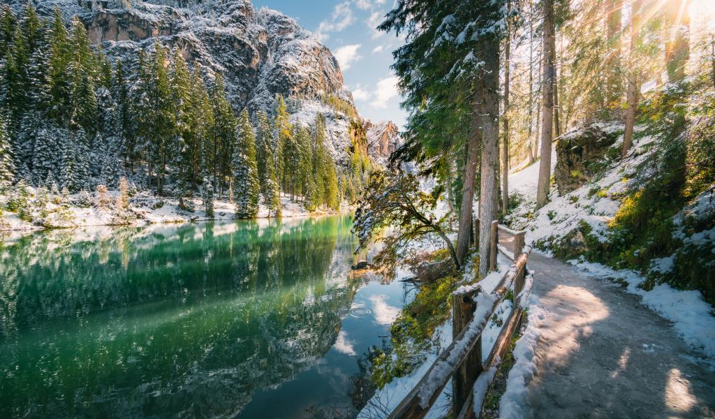 Wallpaper Nice view of the cold river and snow-capped mountains