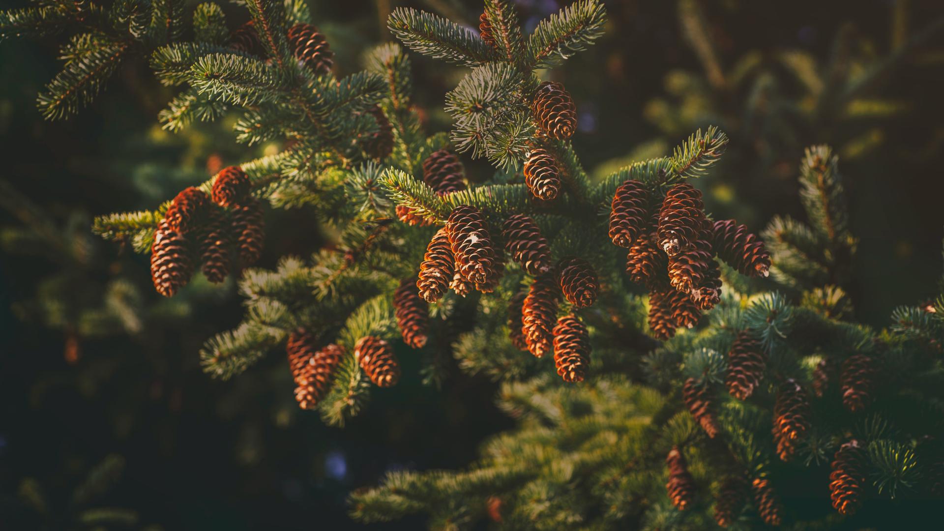 Wallpaper Fluffy spruce branch with cones